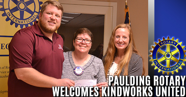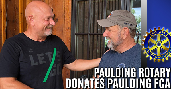 The Paulding Rotary Club is a proud supporter of Paulding's Fellowship of Christian Athletes. Club member Mark Caffery delivers the Rotary's annual donation check to Paulding Area Director, Robbie Finley.