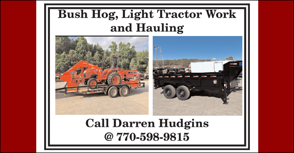 Bush Hog, Light Tractor, Work and Hauling Call Darren Hudgins @ 770-598-9815